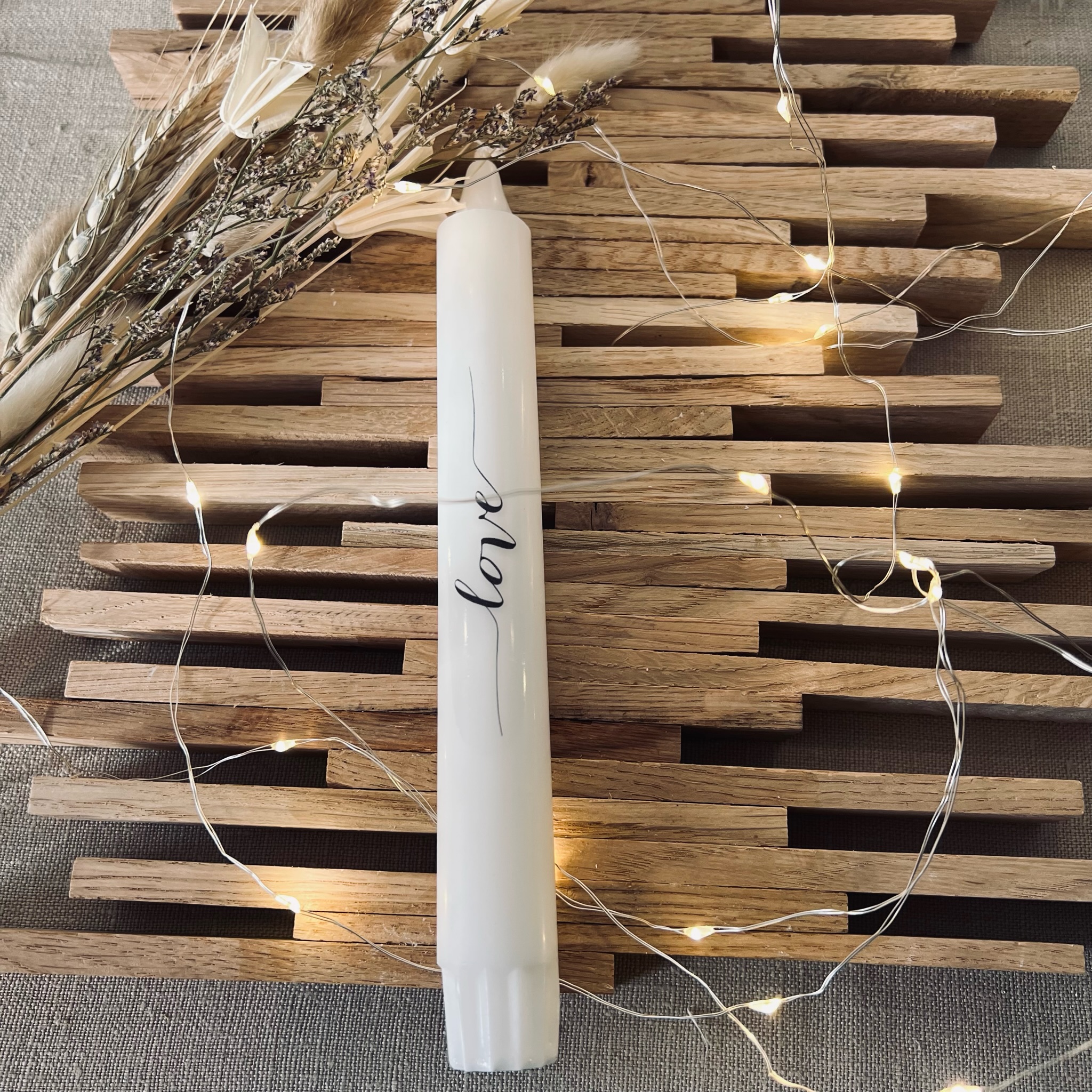 Die Kerzen haben eine Höhe von 20cm und eine Breite von 2cm.
